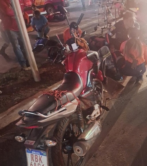 O mototaxista sofreu fratura exposta no pé esquerdo e suspeita de fratura no fêmur. O passageiro apresentou fratura em uma costela e lesão em membro inferior, enquanto o outro motociclista teve escoriações nas pernas.