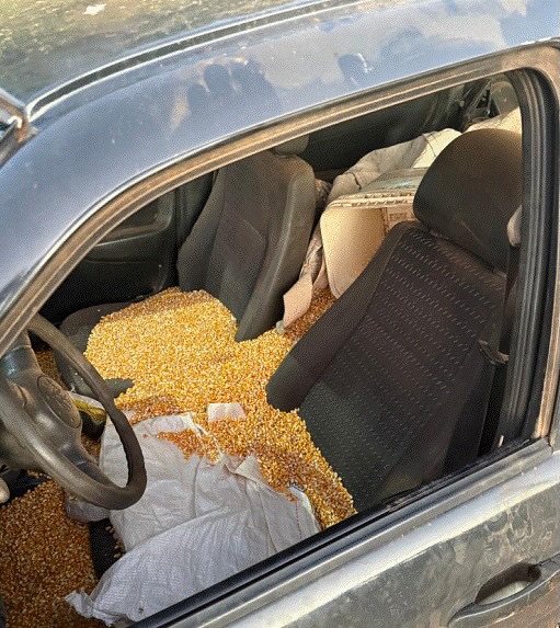 PM localiza carro abandonado com 400 kg de milho furtado de fazenda do DF