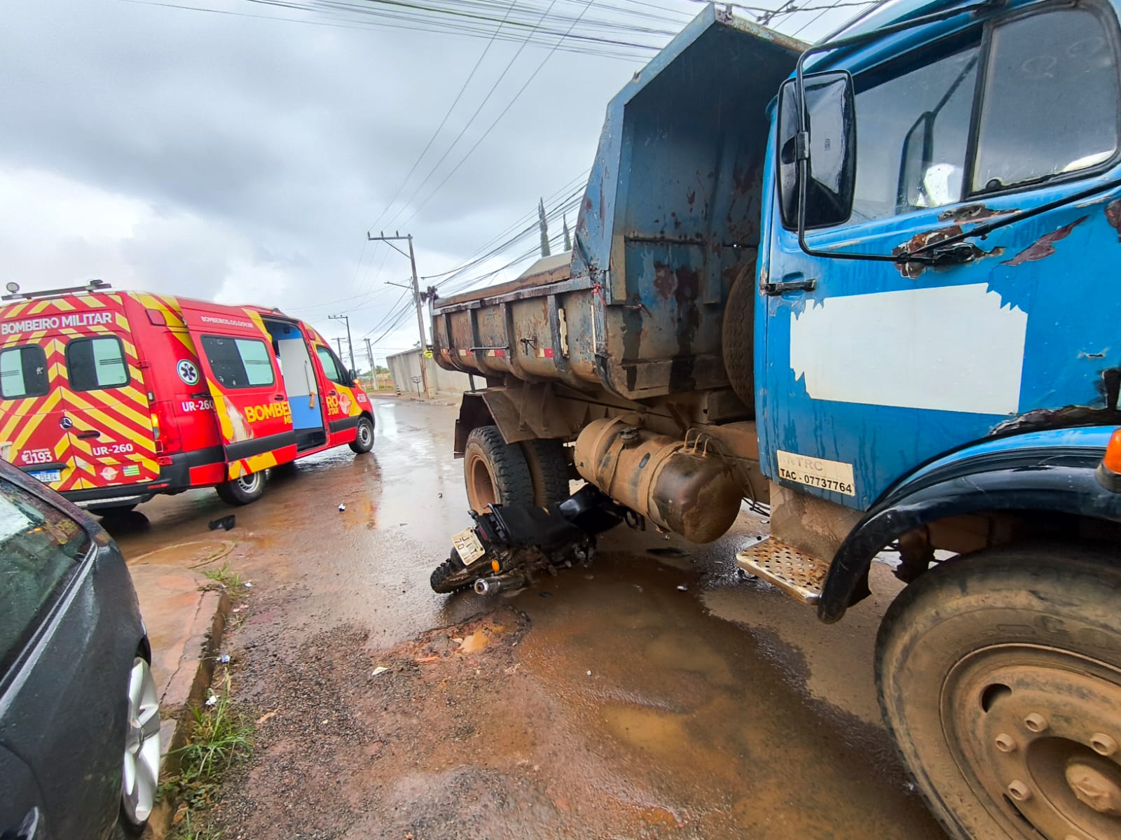 O sinistro aconteceu no cruzamento das Ruas 02 e 42. De acordo com informações do Centro de Operações de Bombeiros (COB 193), a motocicleta trafegava pela Rua 02, no sentido IFG, enquanto o caminhão seguia pela Rua 42, com destino ao Centro, quando os veículos colidiram na intersecção.
