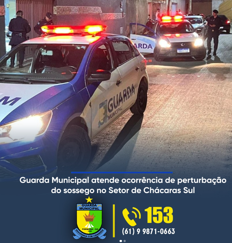 Na noite do último sábado (17), a Guarda Municipal de Formosa foi acionada para conter uma situação de poluição sonora na Rua C, localizada no Setor de Chácaras Sul. A operação, iniciada por volta das 21h09, contou com a atuação conjunta das equipes Bravo e Delta da corporação.