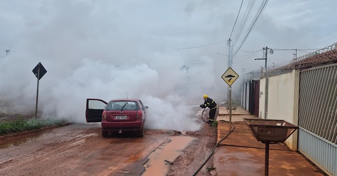 Carro pega fogo no motor no Parque Vila Verde, em Formosa