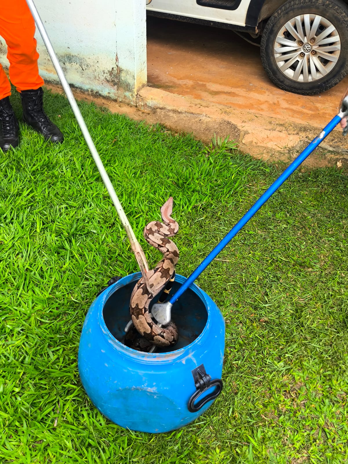 Bombeiros resgatam jiboia em residência no Setor Iris Village, em Formosa